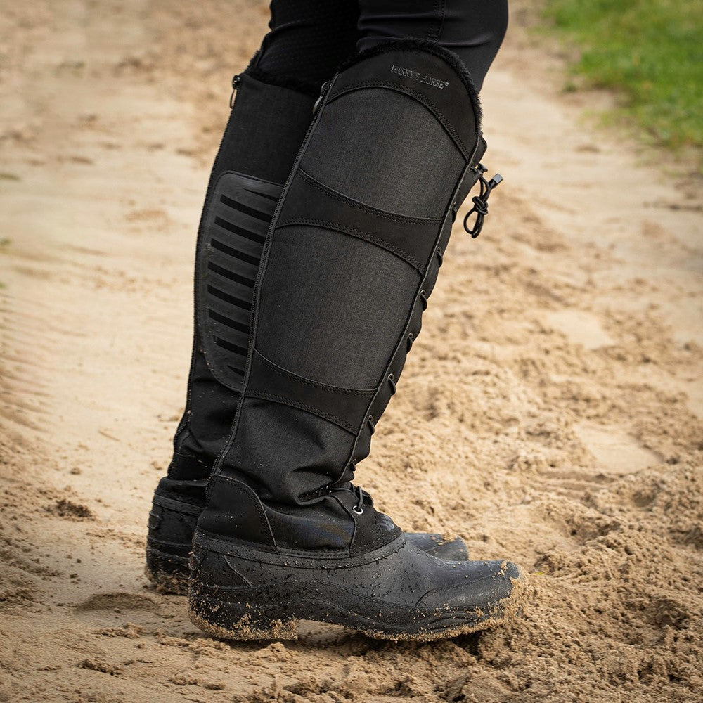 Thermostiefel mit wasserdichtem Fuß, ausgestattet mit einem Reißverschluss hinten zum einfachen An- und Ausziehen, einer elastischen Schnürung vorne und mit Kunstfell gefüttert.