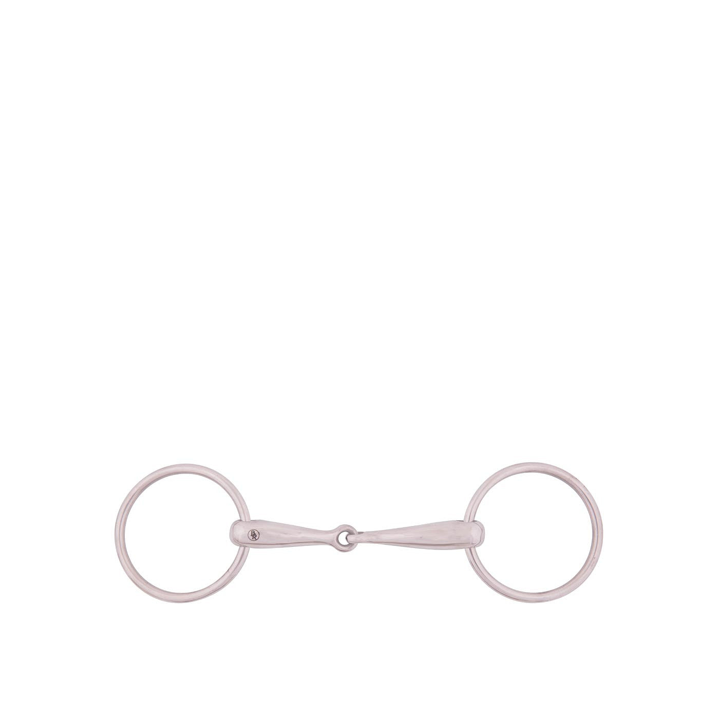 Einfach gebrochen, massiver Edelstahl, Ringe 55 mm bei 11.5 cm und 65 mm bei den anderen Größen. Das Mundstück hat eine Dicke von 16 mm.