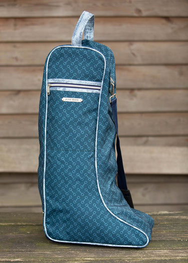 Stiefeltasche mit einem fröhlichen Allover-Print, einer Reißverschlusstasche auf der rechten Seite, einem Tragegriff und einem langen, verstellbaren und abnehmbaren Schultergurt.
