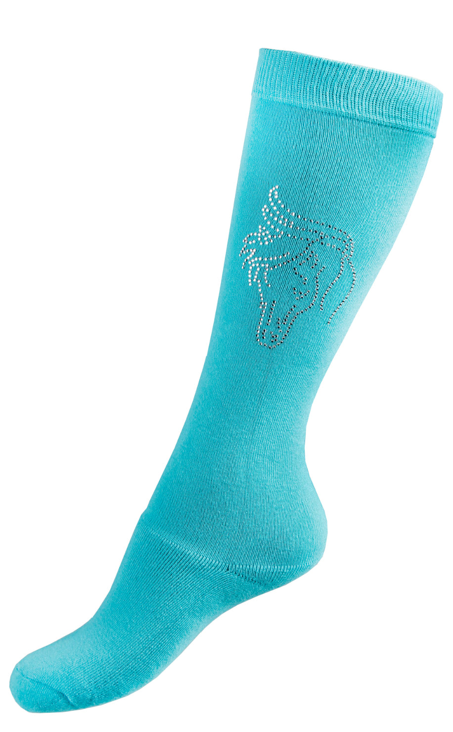 Baumwollsocken mit weichem Fußbett und einem Pferd aus Kristallen auf der Wade. Produktspezifikationen: < Baumwollsocken mit weichem Fußbett Kristallpferd auf der Wade Verpackung: 3 Paar pro Farbe Größen: XS (27 30) S (31 34) M (35 38) L (39 42) Material: < : 75% Baumwolle 5% Lycra