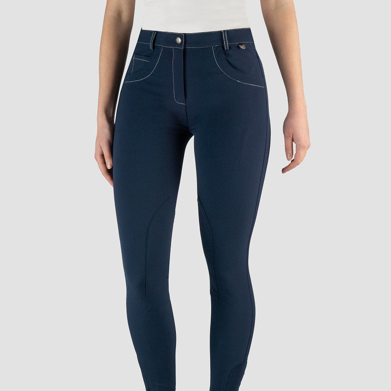 De retour en stock à la demande générale : culotte d'équitation femme taille mi-haute avec renforts en tissu aux genoux. Le Quatar est fabriqué en micropolyester avec un intérieur extra doux et une coupe flatteuse. Les coutures en Lurex argenté lui confèrent un subtil effet pailleté et peuvent à juste titre être qualifiées de classiques chics ! Caractéristiques du produit : Culotte d'équitation femme traditionnelle et high-tech en micropolyester avec un intérieur extra doux. Coutures en Lurex argenté pour un subtil effet pailleté. Deux poches avant en jean suffisamment profondes pour un téléphone portable. Deux poches arrière. Renforts en tissu aux genoux. Composition : 90 % micropolyester, 10 % élasthanne. Intérieur tissé particulièrement doux.