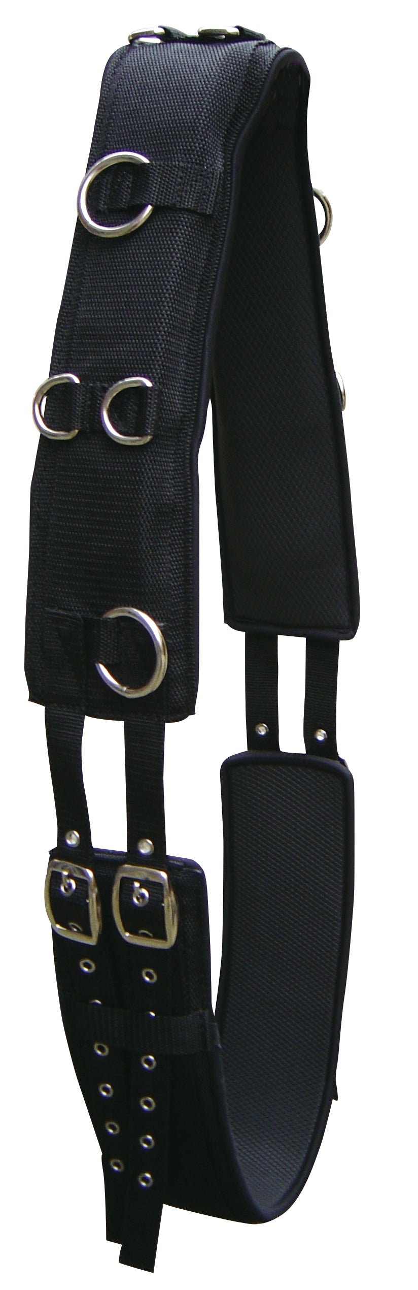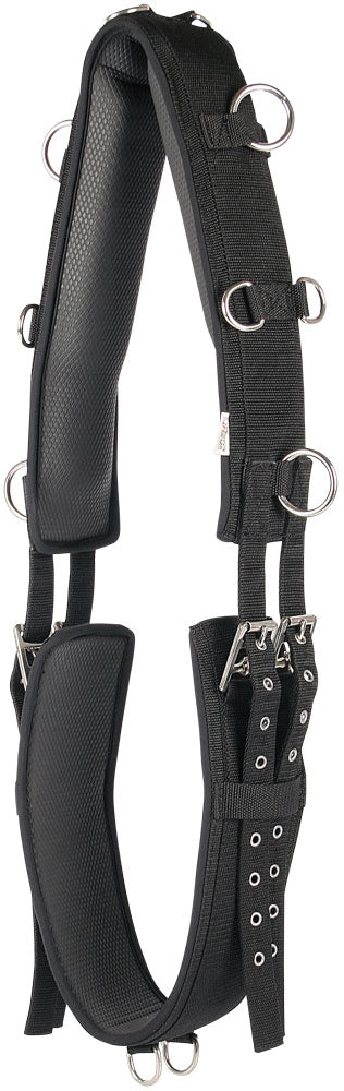Longeersingel met Sharkskin neopreen voering. De groeven in het Sharkskin zorgen voor extra ventilatie en afvoer van transpiratie. De longeersingel is voorzien van 12 ringen waarvan 2 ringen aan de onderkant. Aan beide kanten verstelbaar door middel van rolgespen.