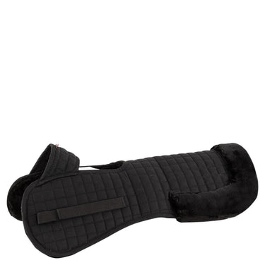 Ce tapis de selle de forme anatomique présente un extérieur élégant en coton matelassé et une doublure merveilleusement douce ainsi qu'une bordure partielle en peau de mouton synthétique. La peau de mouton synthétique est douce pour la peau du cheval, aide à répartir la pression et a un effet amortissant. La découpe pratique évite la pression sur le garrot. Le tapis de selle est doté de passants de selle avec fermeture auto-agrippante et est léger, facile d'entretien et lavable en machine.