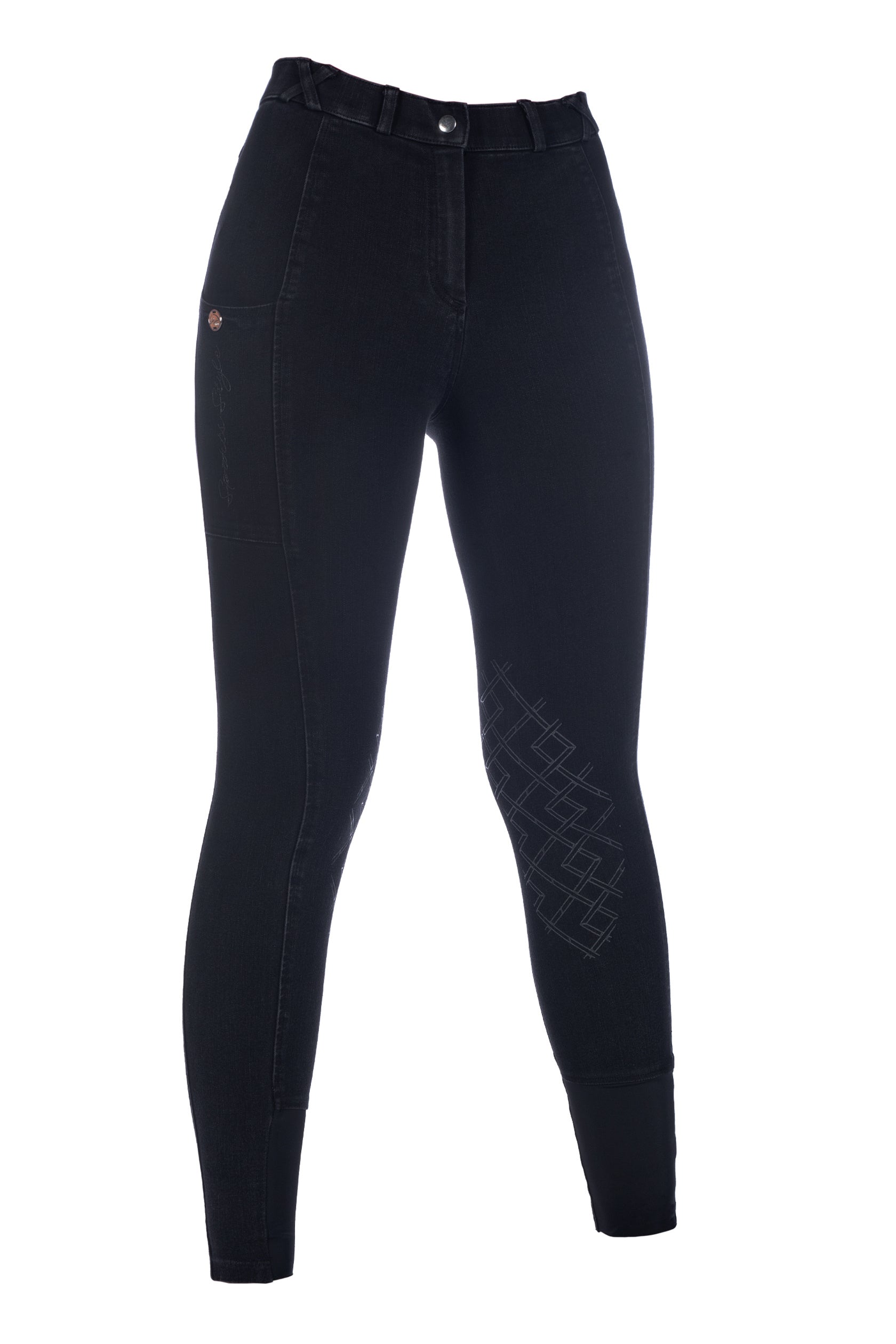 Pantalon d'équitation -Harbour Island Denim- renforts genoux en silicone noir (9100) 36