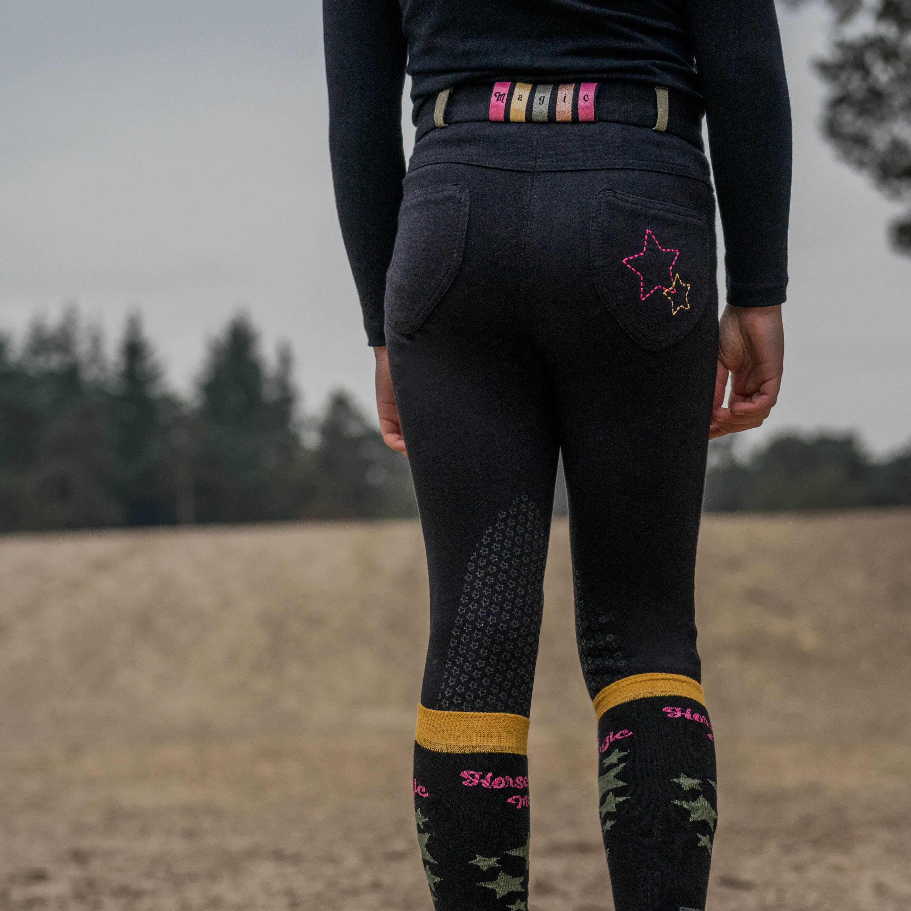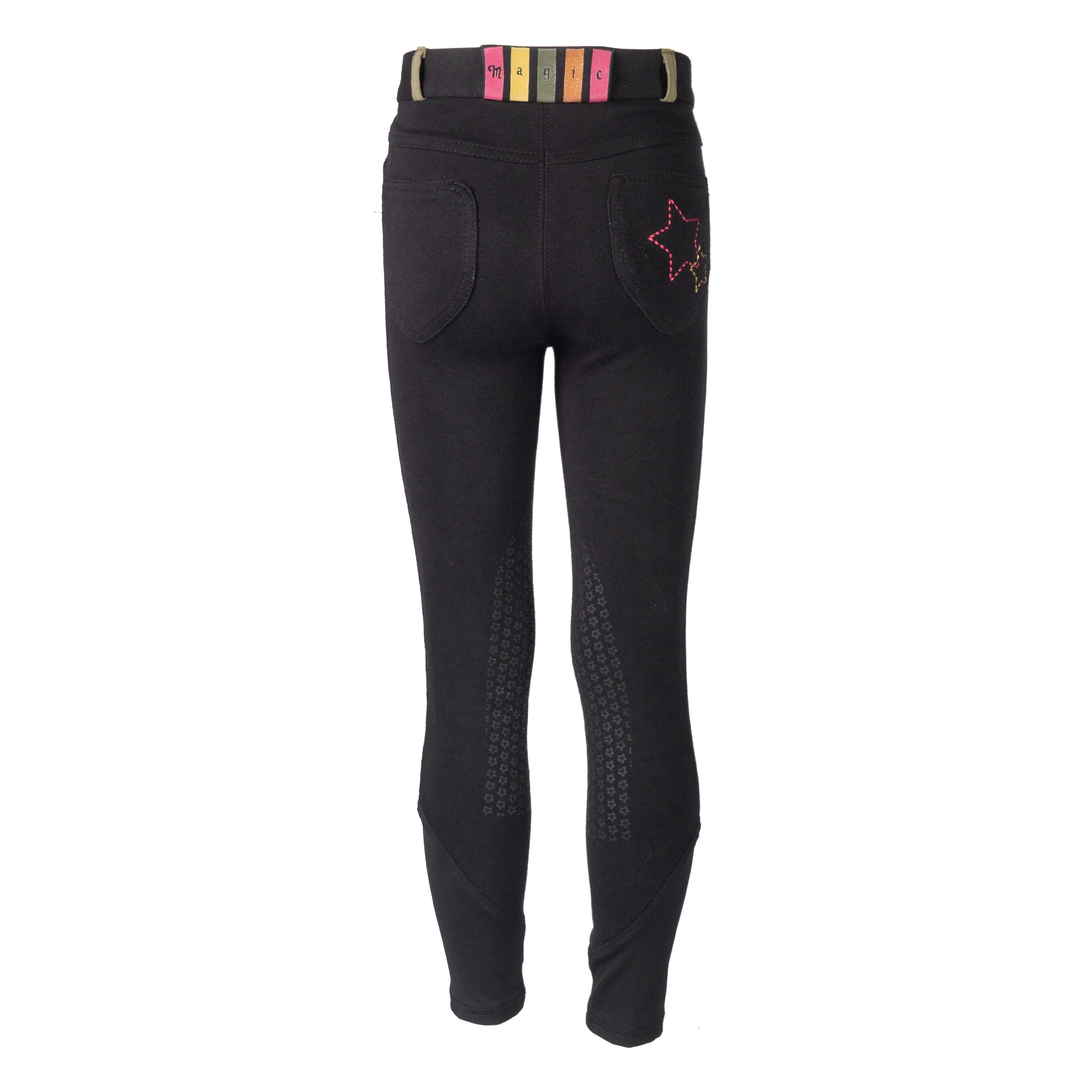 Le pantalon d'équitation Ola Slim Fit est doté de renforts en silicone aux genoux et de deux poches avant et deux poches arrière. Très confortable, il est confectionné principalement en coton. Caractéristiques : Pantalon d'équitation junior, coupe slim, deux poches avant et deux poches arrière, passants de ceinture contrastés, broderie contrastée sur les poches arrière, imprimé pailleté sur la ceinture arrière, chevilles élastiquées, renforts en silicone aux genoux, composition : 95 % coton, 5 % élasthanne (tricot).