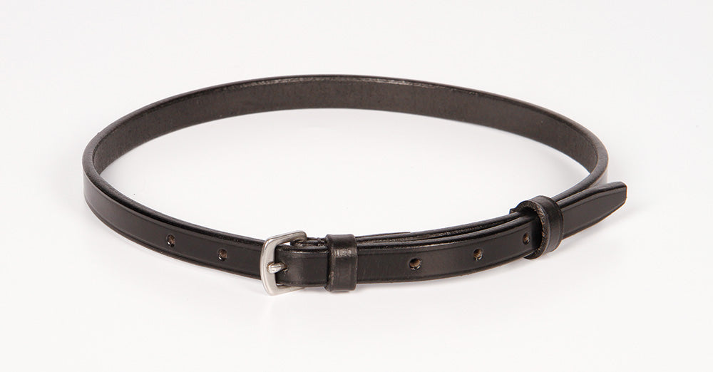 Ledergürtel mit Nickelschnallen. Erhältlich in den Längen Cob (70 cm) und Full (73 cm).