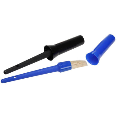 Hufbürste im Halter zur Verwendung mit Hufpflegeprodukten.