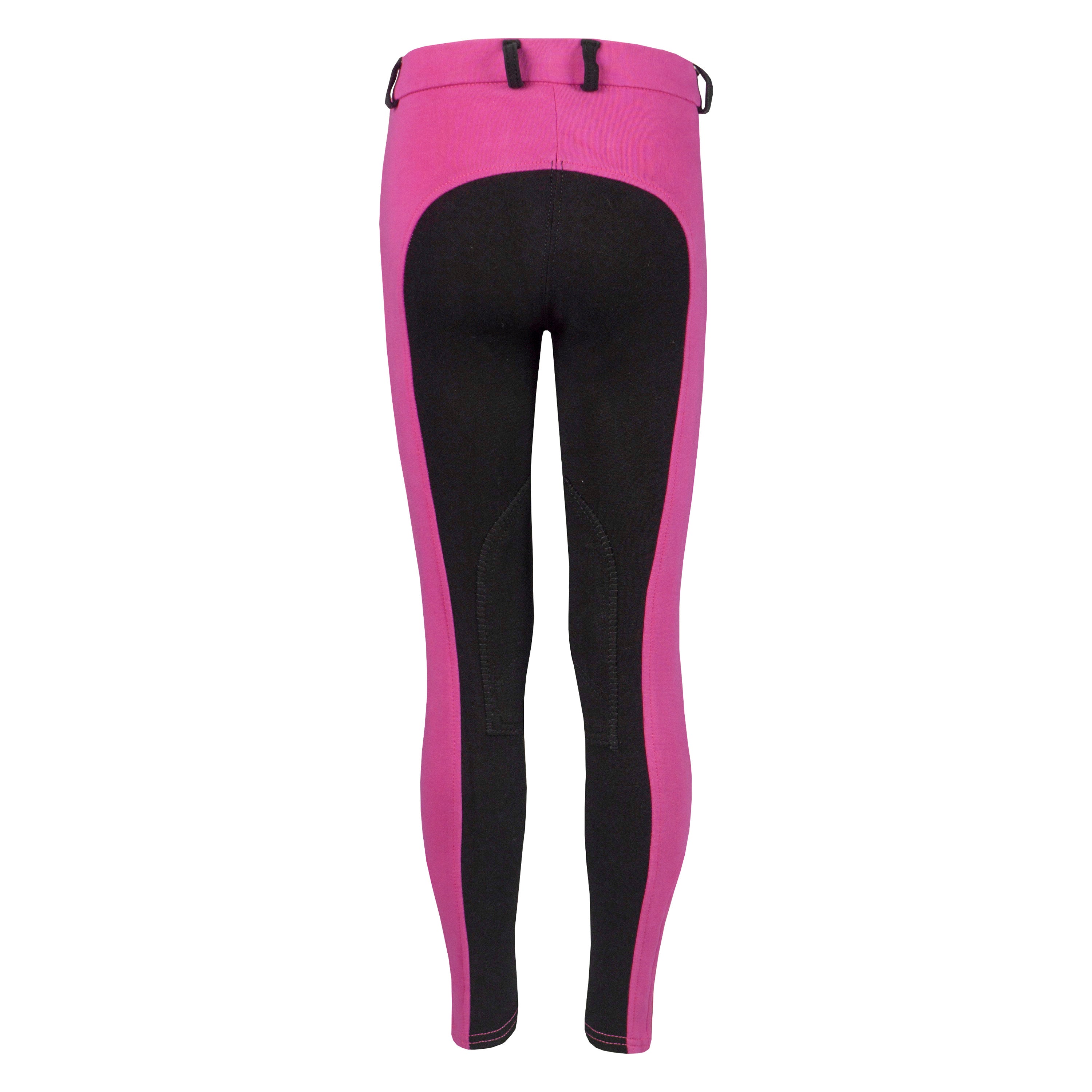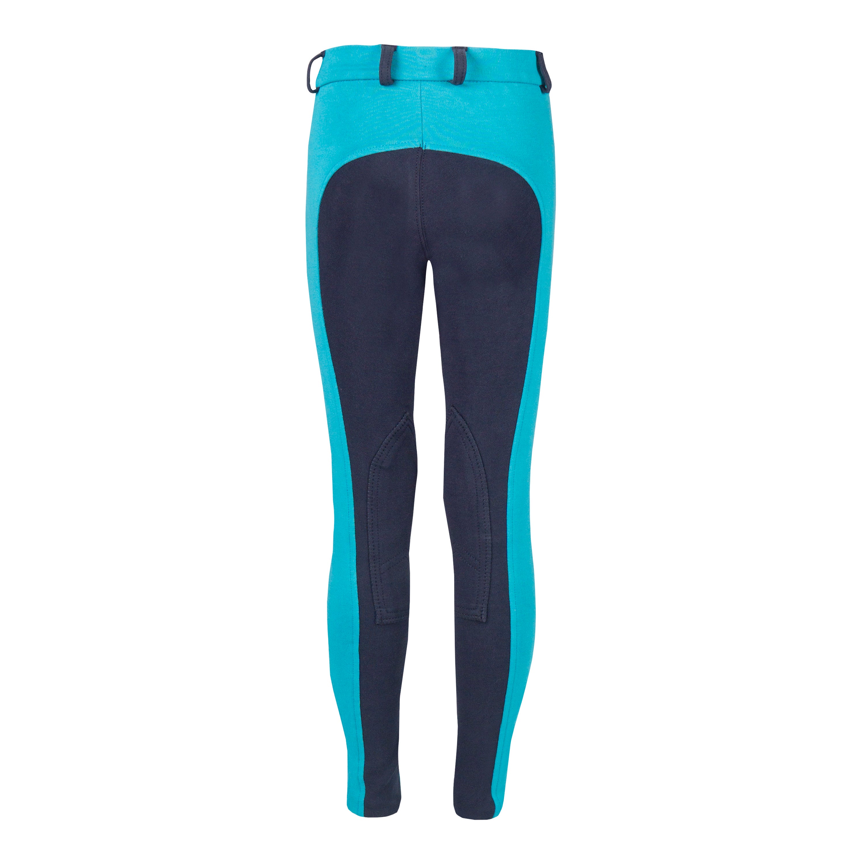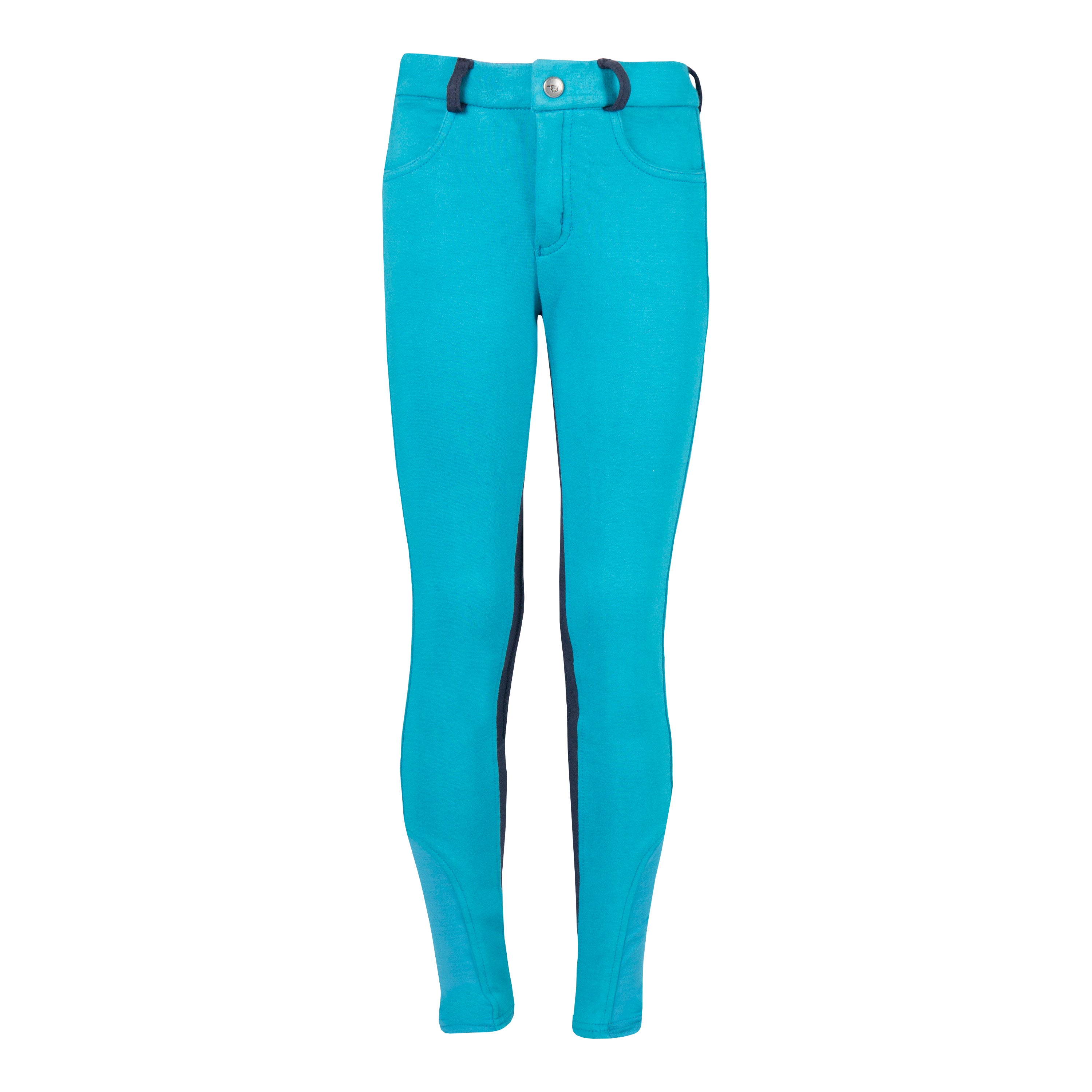 Einfache Kinderreithose mit kontrastfarbenem Gesäß und Gürtelschlaufen. Die Hose hat Stoff-Kniebesatz. Produktspezifikationen: Kontrastfarbener Gesäß- und Gürtelschlaufen Stoff-Kniebesatz Material: 95 % Baumwolle, 5 % Elastan