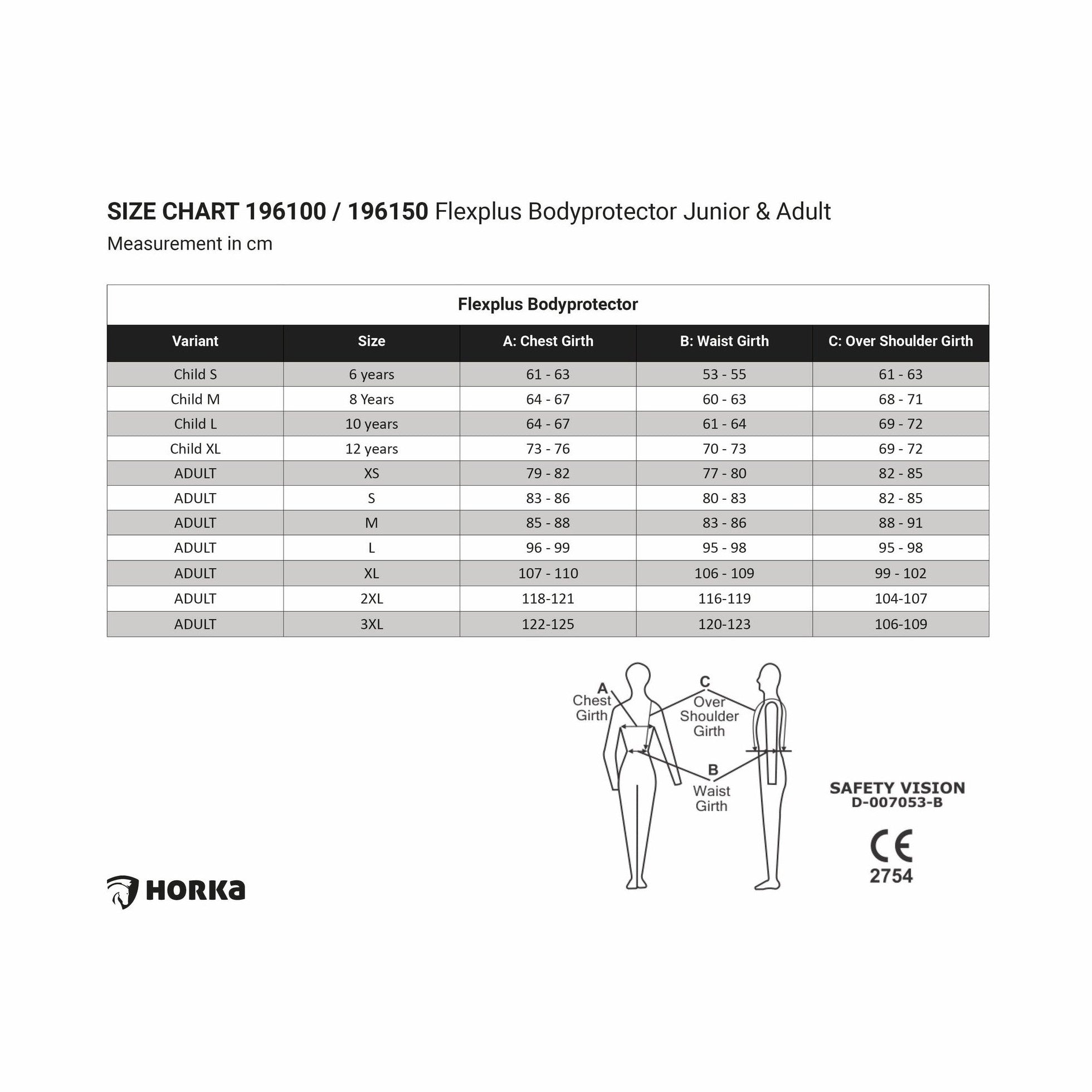 De HORKA FlexPlus bodyprotector is een comfortabel veiligheidsvest voor volwassenen. De opbouw van kleine EVA foam blokjes in het vest zorgen voor bewegingsvrijheid en een betere vorming om het lichaam. De HORKA FlexPlus bodyprotector is goedgekeurd en gecertificeerd volgens de EN 13158:2018 Level 3 normering door de firma Critt Sport te Chatellerault in Frankrijk. Dit is een van de testinstituten (notified bodies) die is aangesteld door de Europese Unie om producten te testen en te keuren naar de geldende veiligheidsnormen. Productspecificaties: :Wasvoorschrift: 30 graden met de hand Materiaal: Buitenzijde: 100% nylon Binnenzijde: 80% nylon 20% lycra Voering: EVA Memory foam EVA Memory foam: de foam blokken zullen zich lichtelijk aanpassen naar de vorm van het lichaam door warmte.