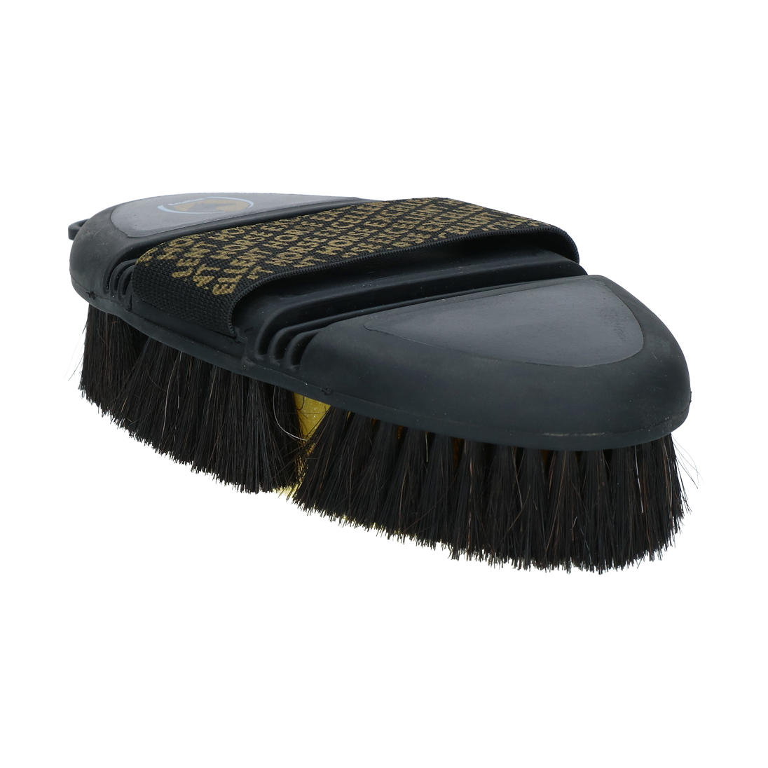 Door de flexibele bovenzijde ligt de borstel comfortabel in de hand en vormt deze zich eenvoudig naar het lichaam van het paard.