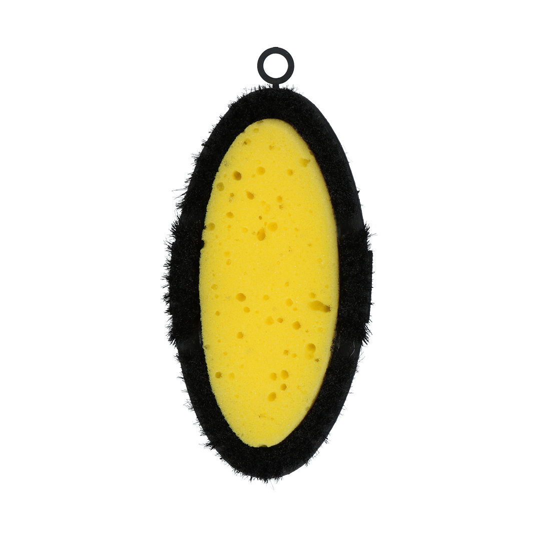 De spons absorbeert water en shampoo uitstekend en de paardenharen verwijderen vuil effectief.