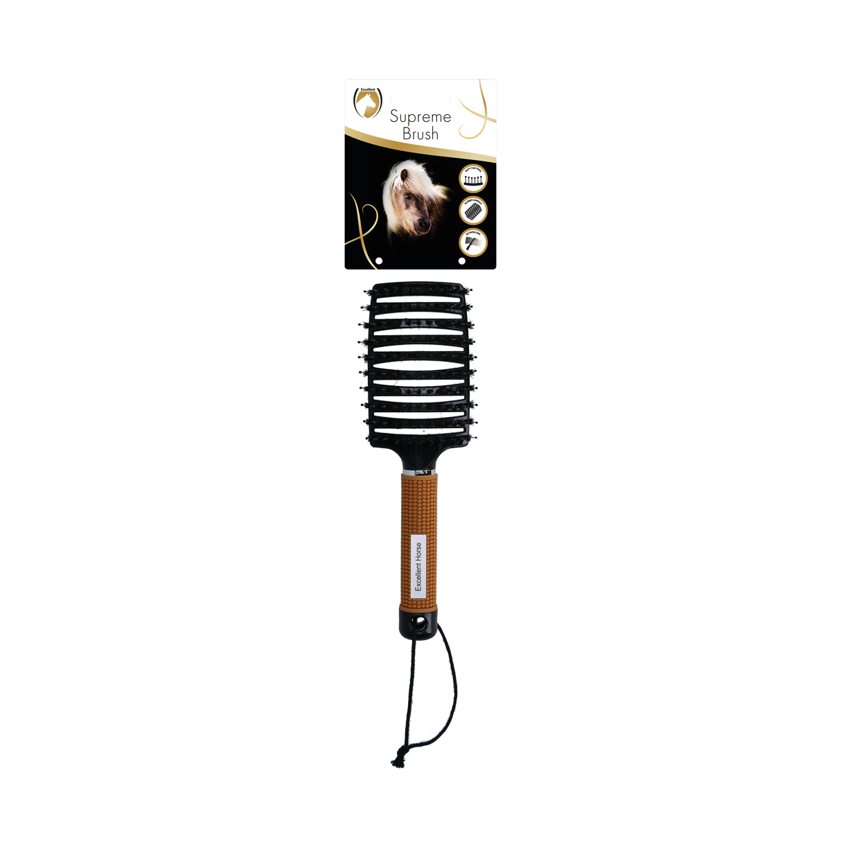 De Excellent Hose Supreme Borstel verwijdert moeiteloos alle klitten uit staart en manen, én voorkomt gespleten haarpunten.