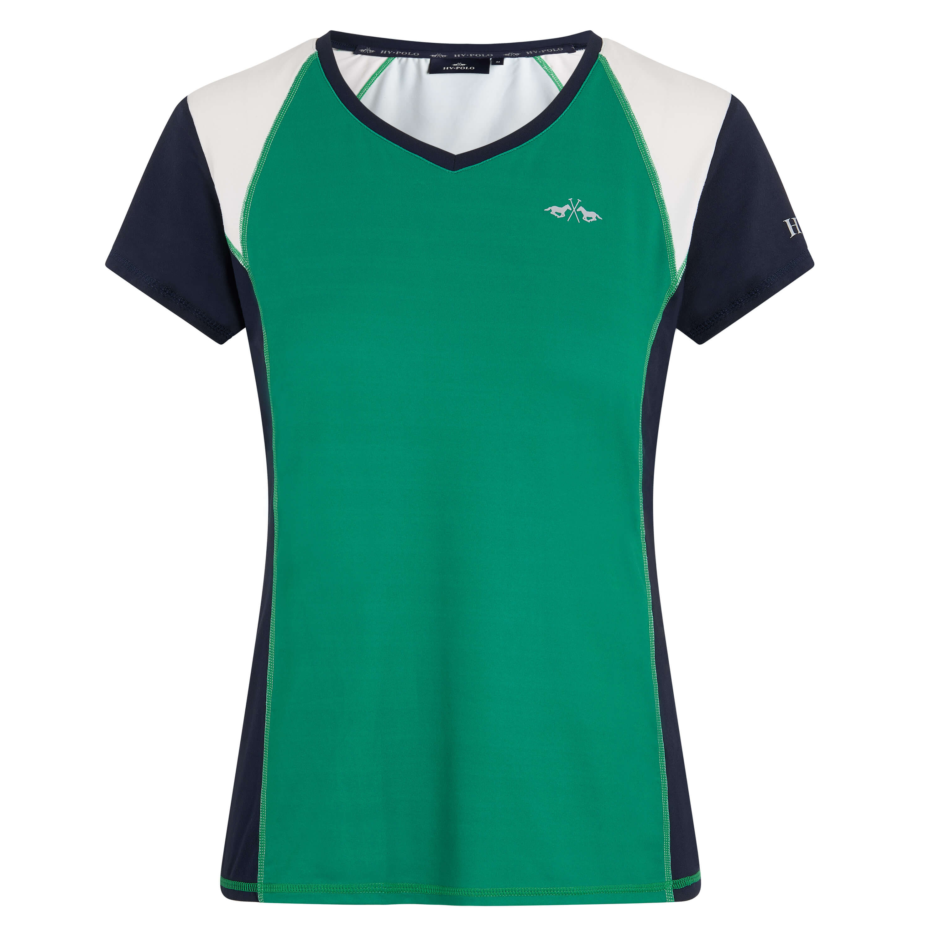 Het HV Polo Technisch T-shirt Candell is een sportief en modieus T-shirt dat verkrijgbaar is in drie kleuren met colourblockings of in een effen variant. Het getailleerde model zorgt samen met de contrastkleurige zijkanten voor een slanke look. Het T-shirt is gemaakt van functioneel materiaal dat vocht transporteert en daardoor ideaal is voor hoge inspanningen en langdurig rijplezier.