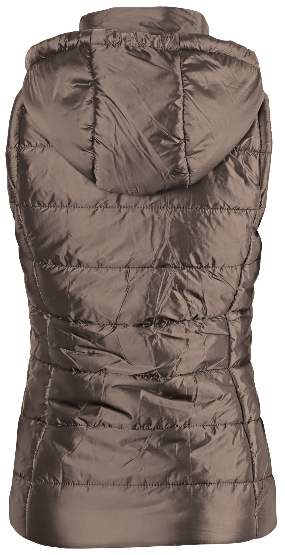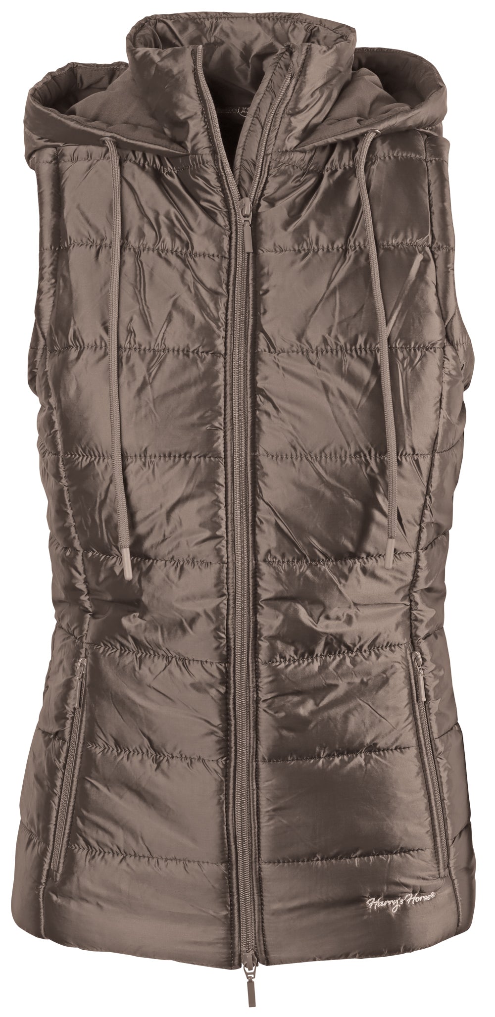 Bodywarmer met een tweeweg ritssluiting, twee zakken met ritssluiting, capuchon met trekkoord en een ophanglusje.