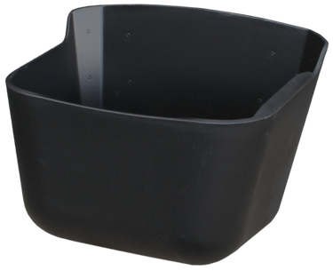 Robuster Futternapf aus schwarzem Kunststoff mit auslaufsicherer Eckwand und Stöpsel (Polypropylen).